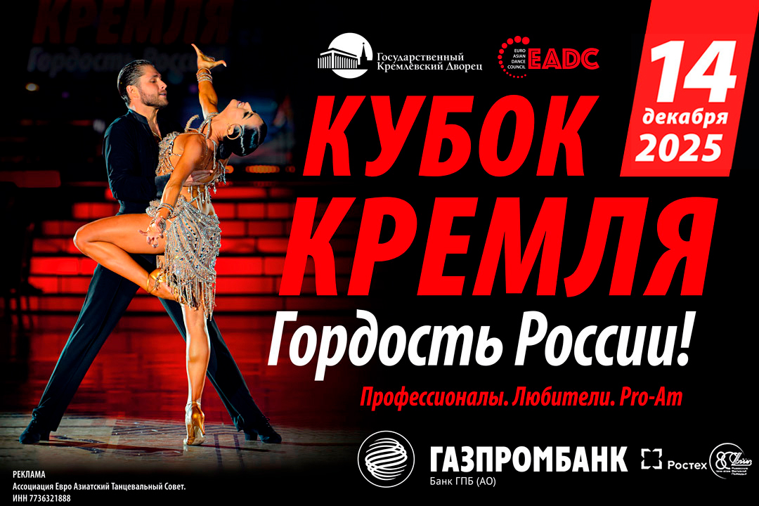 14 декабря 2025 года главный паркет страны Кремлевского Дворца в восьмой раз примет турнир "Кубок Кремля — Гордость России!". Организатор — президент РТС и EADC, почетный вице-президент WDC, заслуженный деятель искусств РФ, народный артист России Станислав Попов. Турнир пройдет под эгидой Евро-Азиатского Танцевального Совета (ЕАDC). Об ожиданиях, о новых поколениях танцоров, о собственных страхах и о многом другом рассказали вице-чемпионы России по латиноамериканским танцам среди профессионалов, многократные призеры Кубков Кремля Андрей и Анастасия Киселевы.