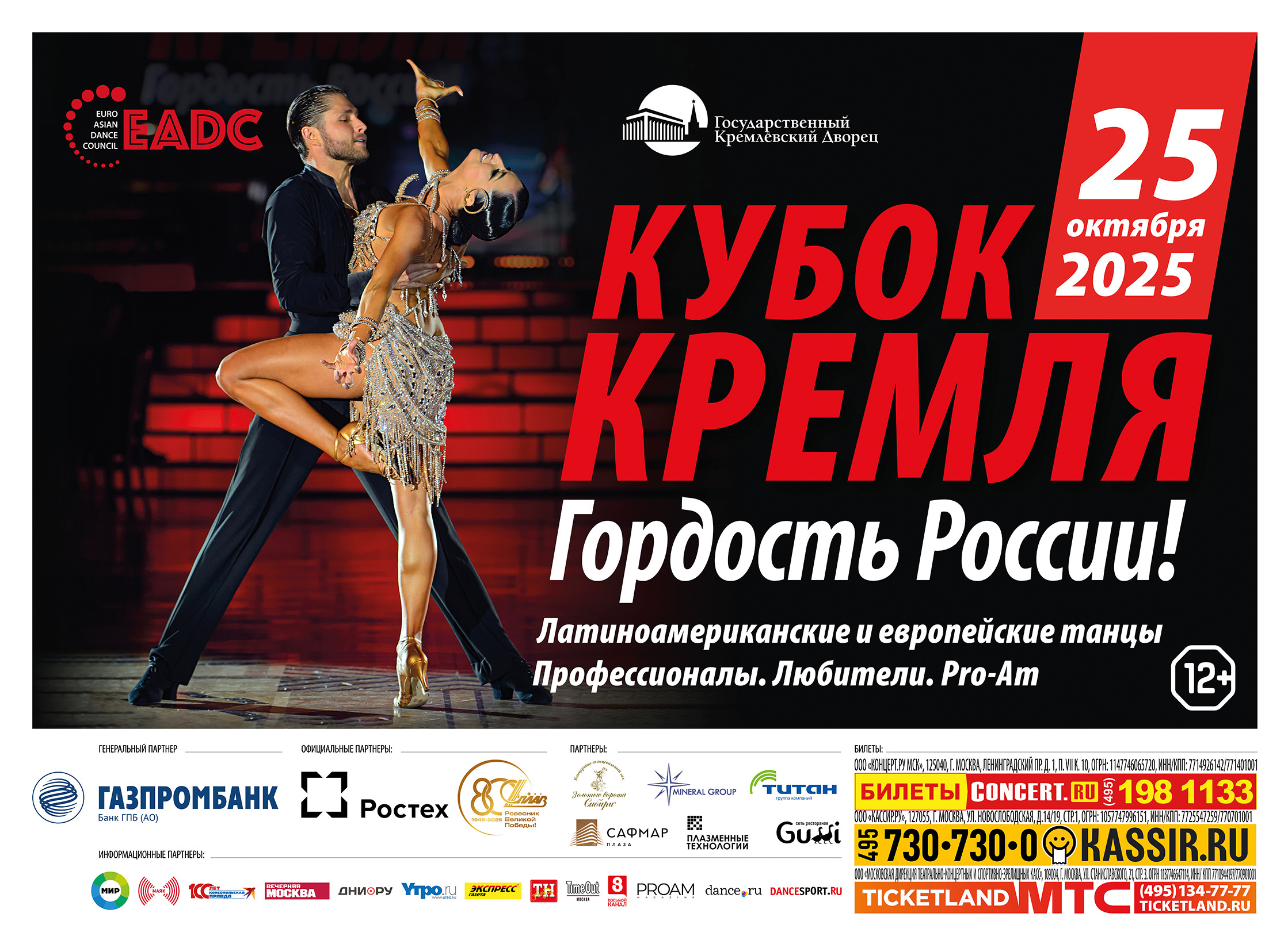 25 октября 2025 года на главном паркете страны в Кремлевском Дворце состоится 8-ой «Кубок Кремля — Гордость России!». Организатор — президент Российского Танцевального Союза, президент Евро-Азиатского Танцевального Совете (EADC), почетный вице-президент WDC, заслуженный деятель искусств РФ, народный артист России Станислав Попов.