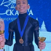 Трудолюбивый, спокойный партнер с серьезным отношением к тренировкам. Занятия 5-6 раз в неделю. Так же танцует в театре имени Вадима Елизарова. Тренер Наталия Иванова. Участие в турнирах обязательно.