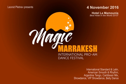 Теперь "AMAIZNG DANCE WORLD" приглашает вас в Марракеш, где впервые в Марокко состоится International Pro-Am Dance Festival "MAGIC MARRAKESH". Он пройдет 4 ноября 2016г. в одном из лучших отелей мира - неповторимом "Hotel La Mamounia".